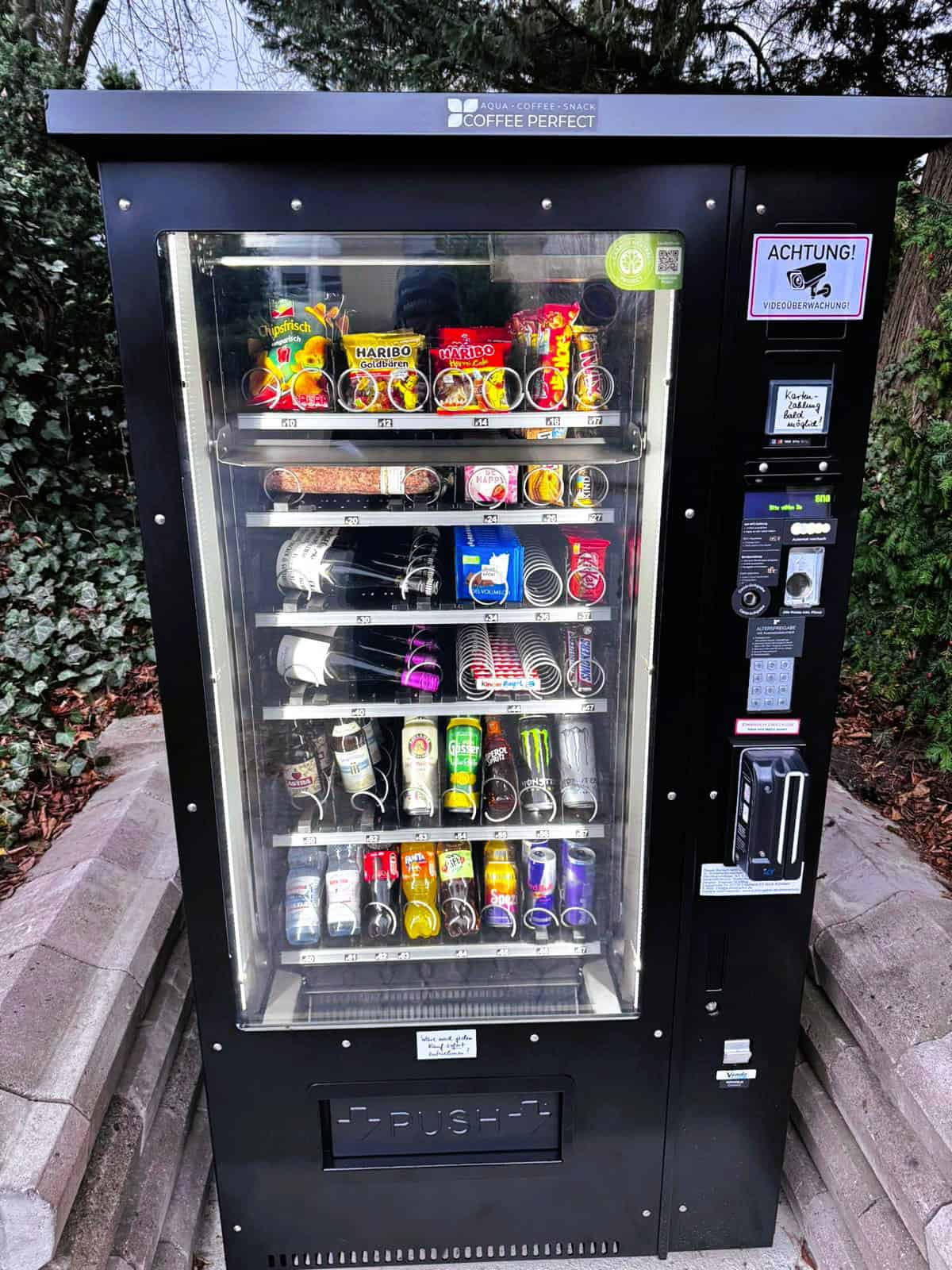 Einen Automaten. Mit Snacks, Getränken und Herzhaftem.